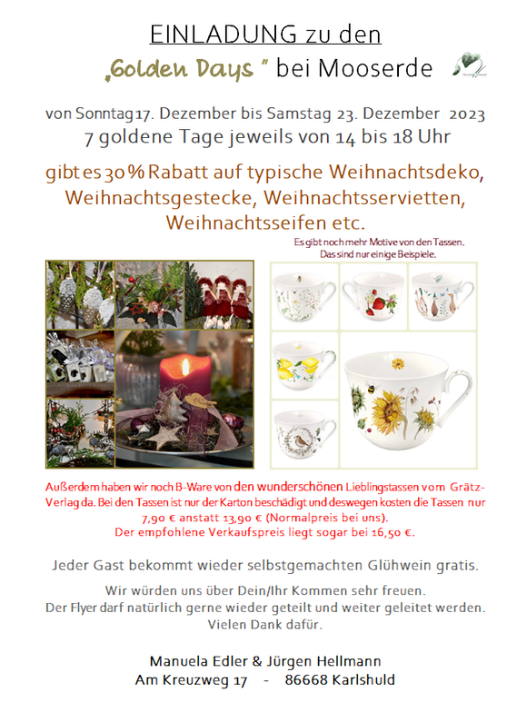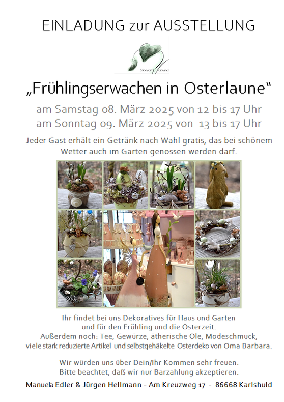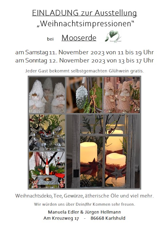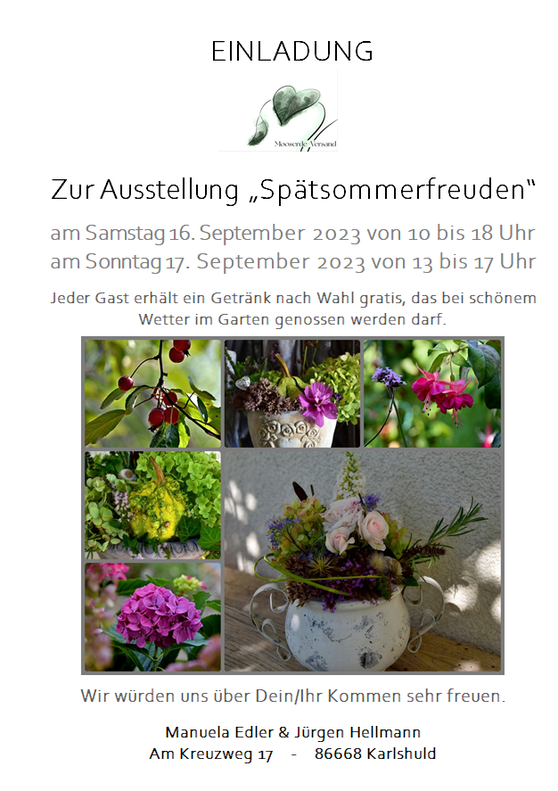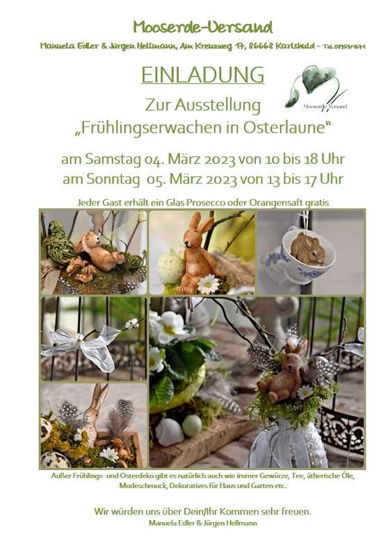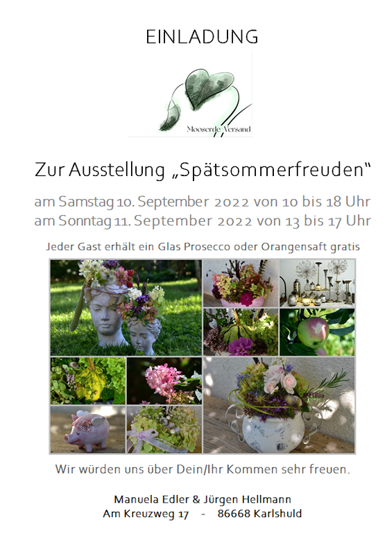 Bei Mooserde aktuell findet Ihr immer die Veranstaltung die demnächst bei Mooserde vor Ort stattfindet. Falls Ihr in der Nähe wohnt, freuen wir uns natürlich, wenn Ihr mal bei uns vorbei schaut.